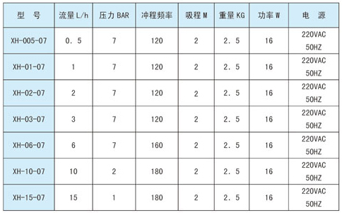 电磁计量泵参数表